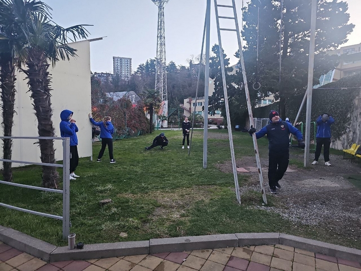 О работе с основной командой говорит главный тренер сборной России Клавдия Майорова: «Сбор проходит хорошо. Все спортсмены в хорошей форме и стараются. Направленность сбора на общую силовую и специальную скоростно-силовую подготовку. Отсюда много тренировок с амортизаторами, фитнес мячами, штангами. И на кортах на специальную выносливость. Основная задача - подготовится физически к главным стартам в этом сезоне. Условия хорошие, снега нет».